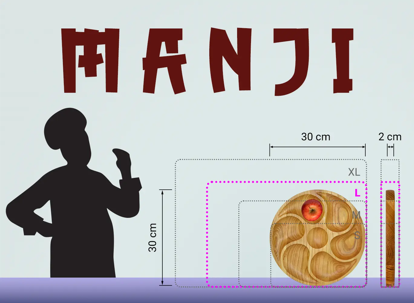 - Erhältlich in zwei Größen: Ø 30 cm (Manji), Ø 38 cm (Manji DAI)