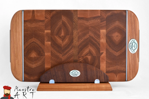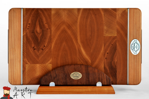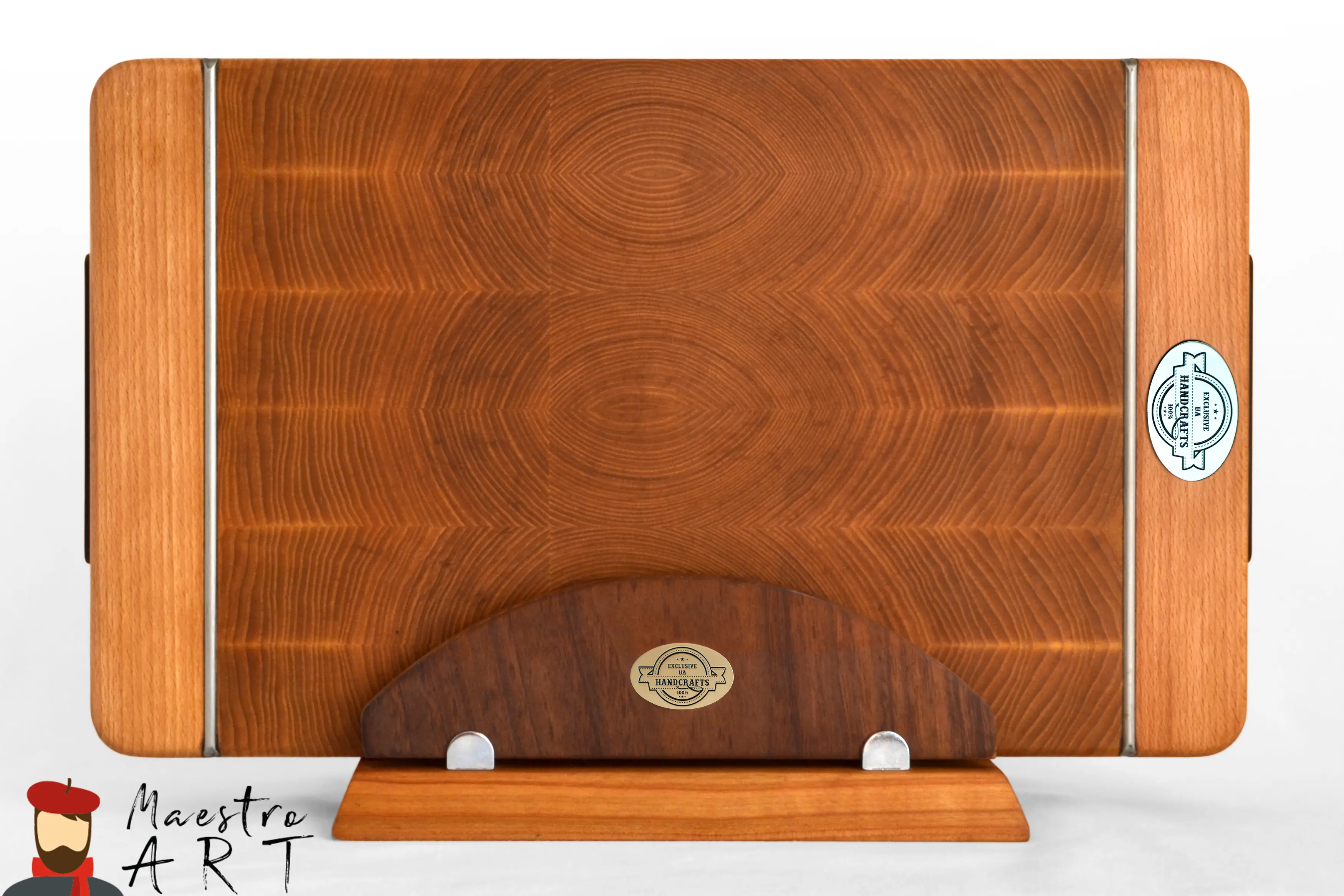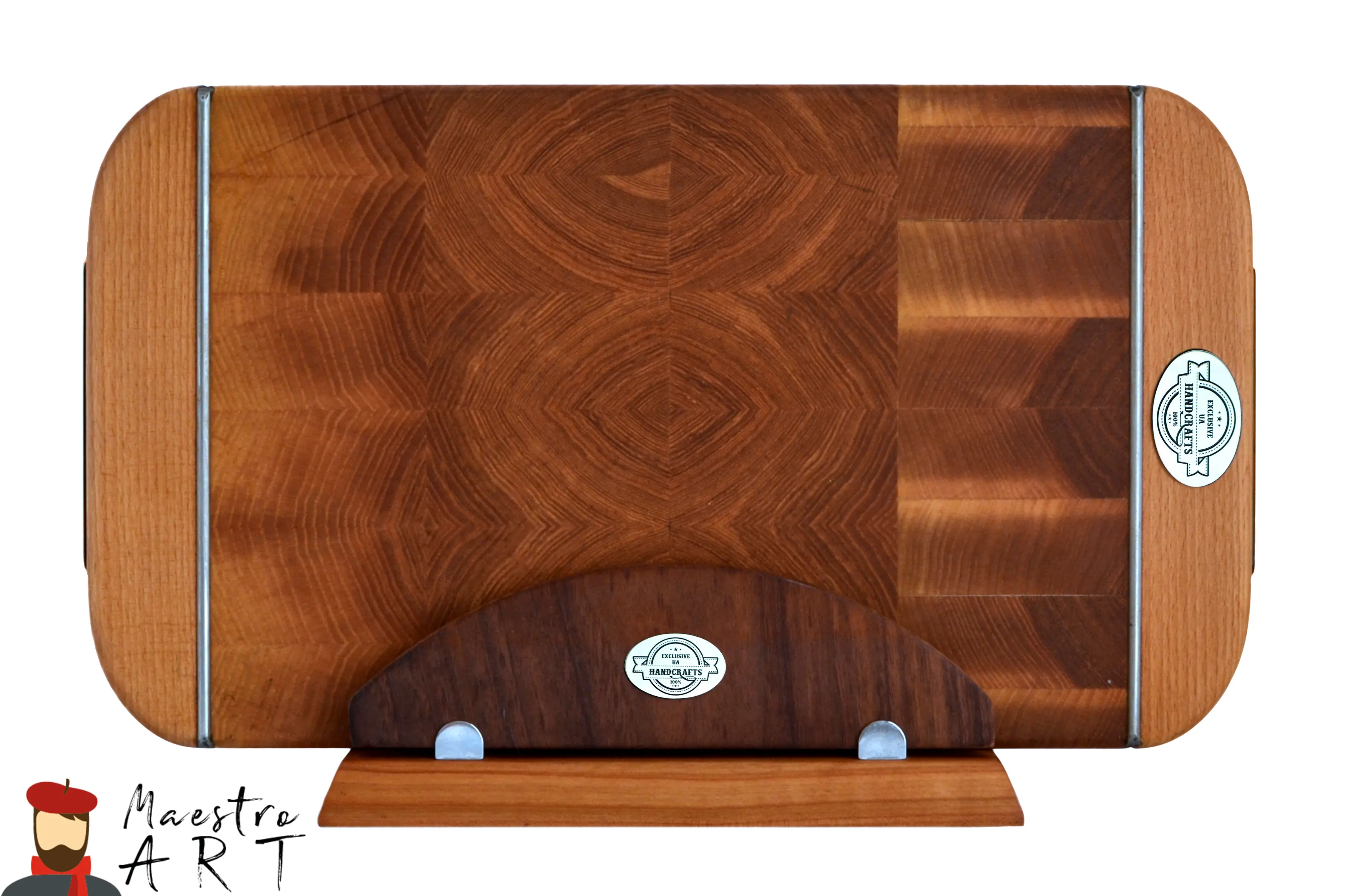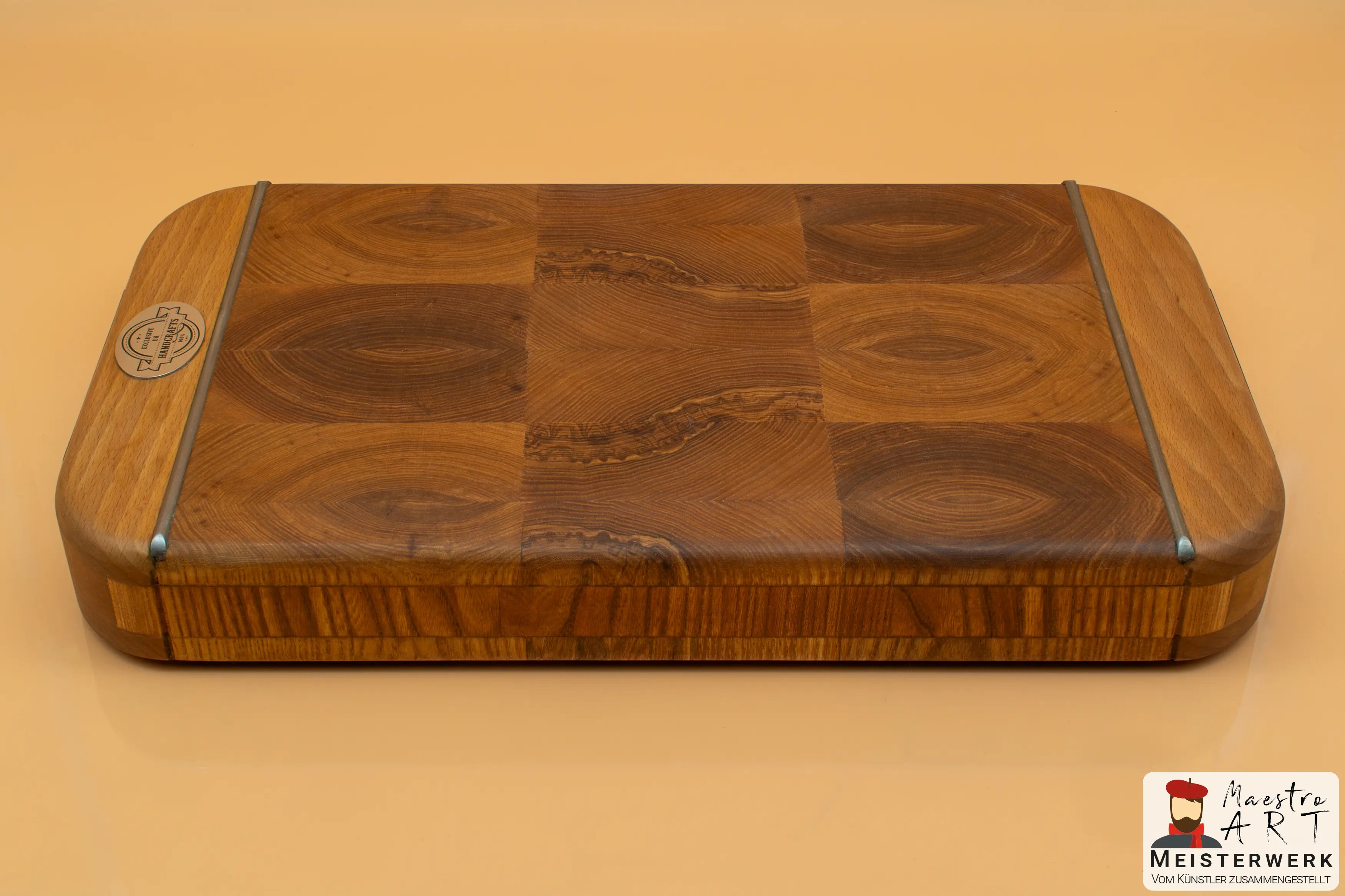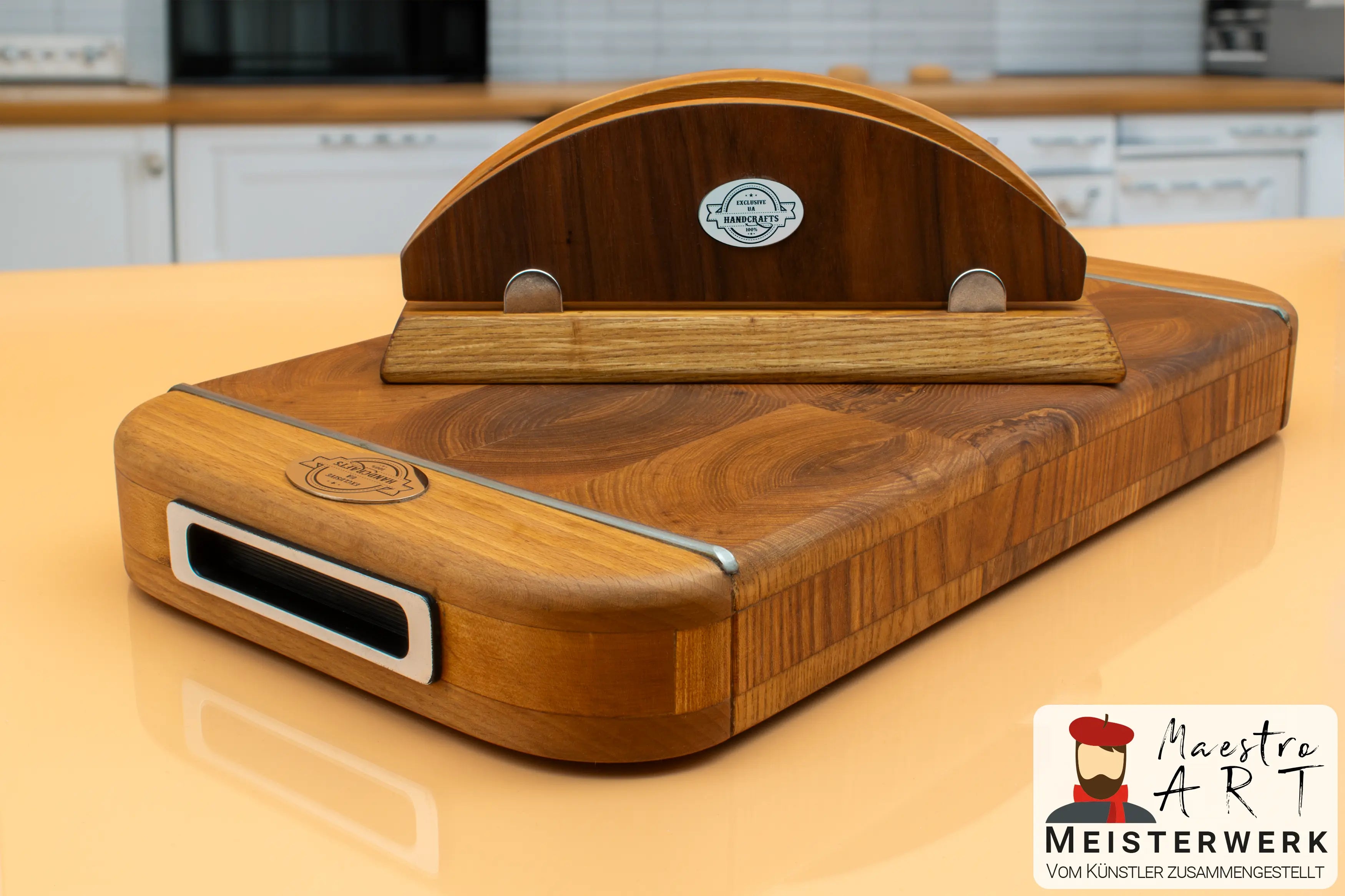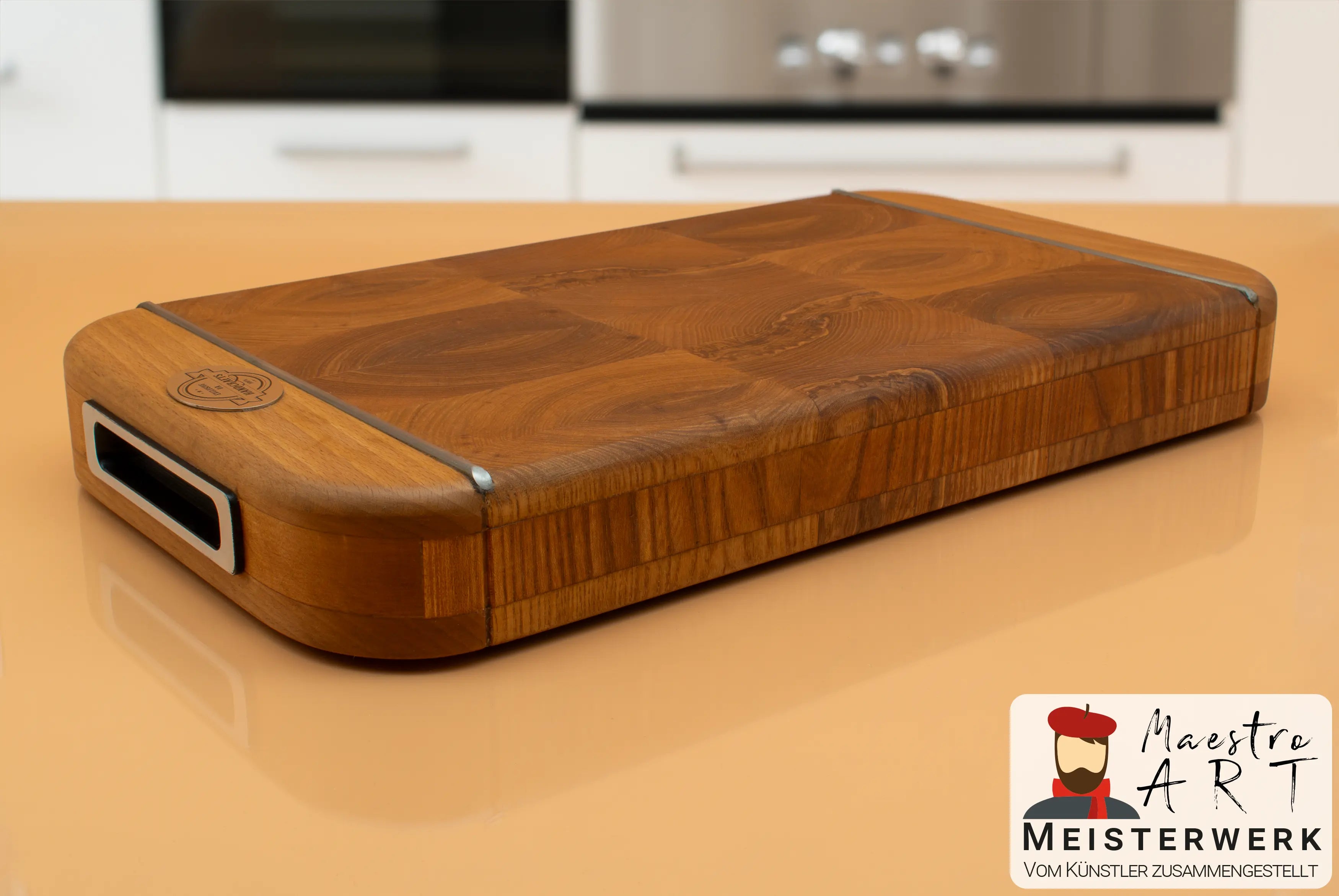 Das Premium Stirnholz-Schneidebrett "Milano Maestro" vereint einzigartige Handwerkskunst, luxuriöse Materialien und platzsparendes Design in einem langlebigen Küchenaccessoire. Dieses kompakte Schneidebrett ist nicht nur ein praktischer Helfer für kleinere Küchen, sondern auch ein stilvolles Statement für höchste Ansprüche.