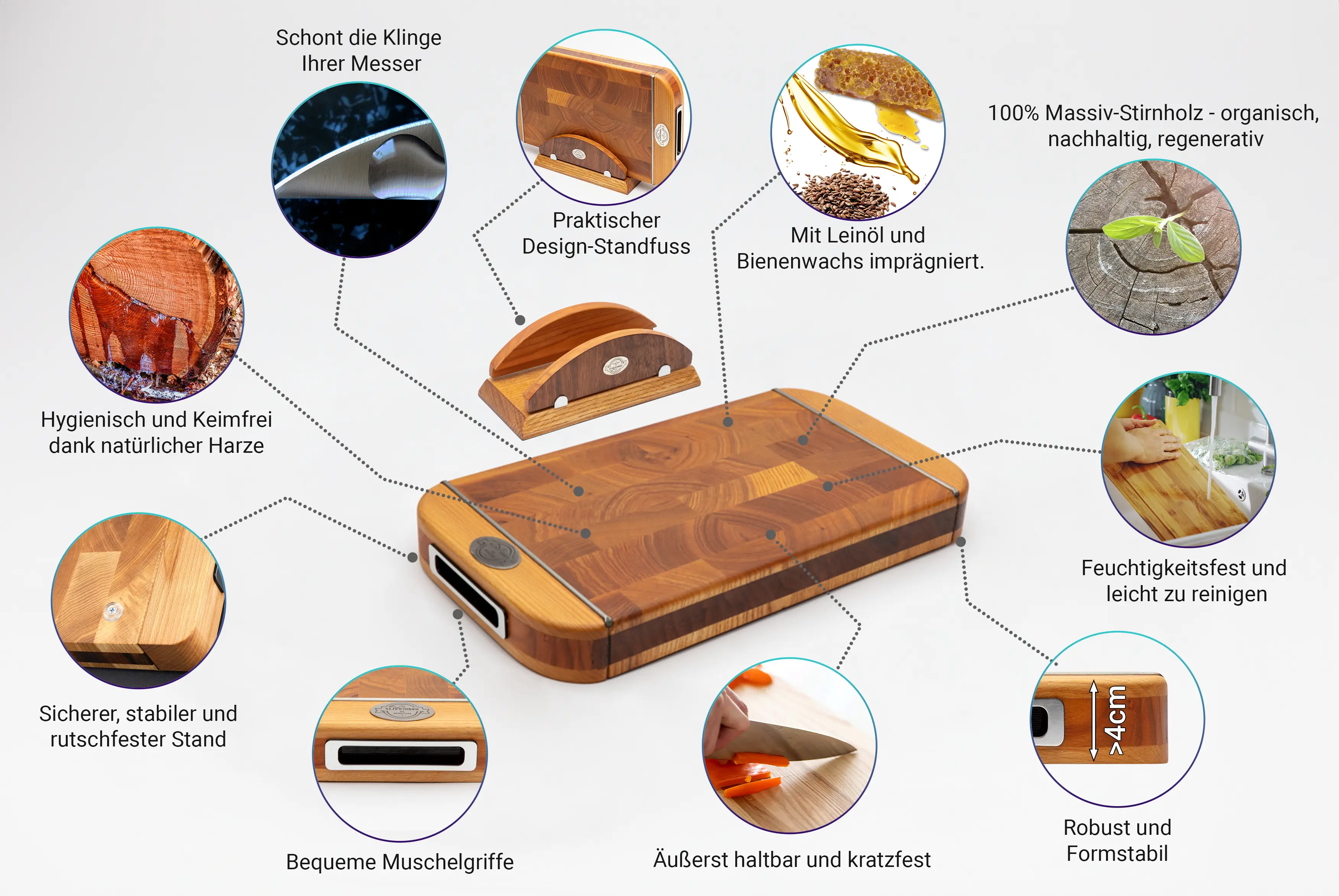 - Premium Stirnholz Schneidebretter: 5 Jahre
