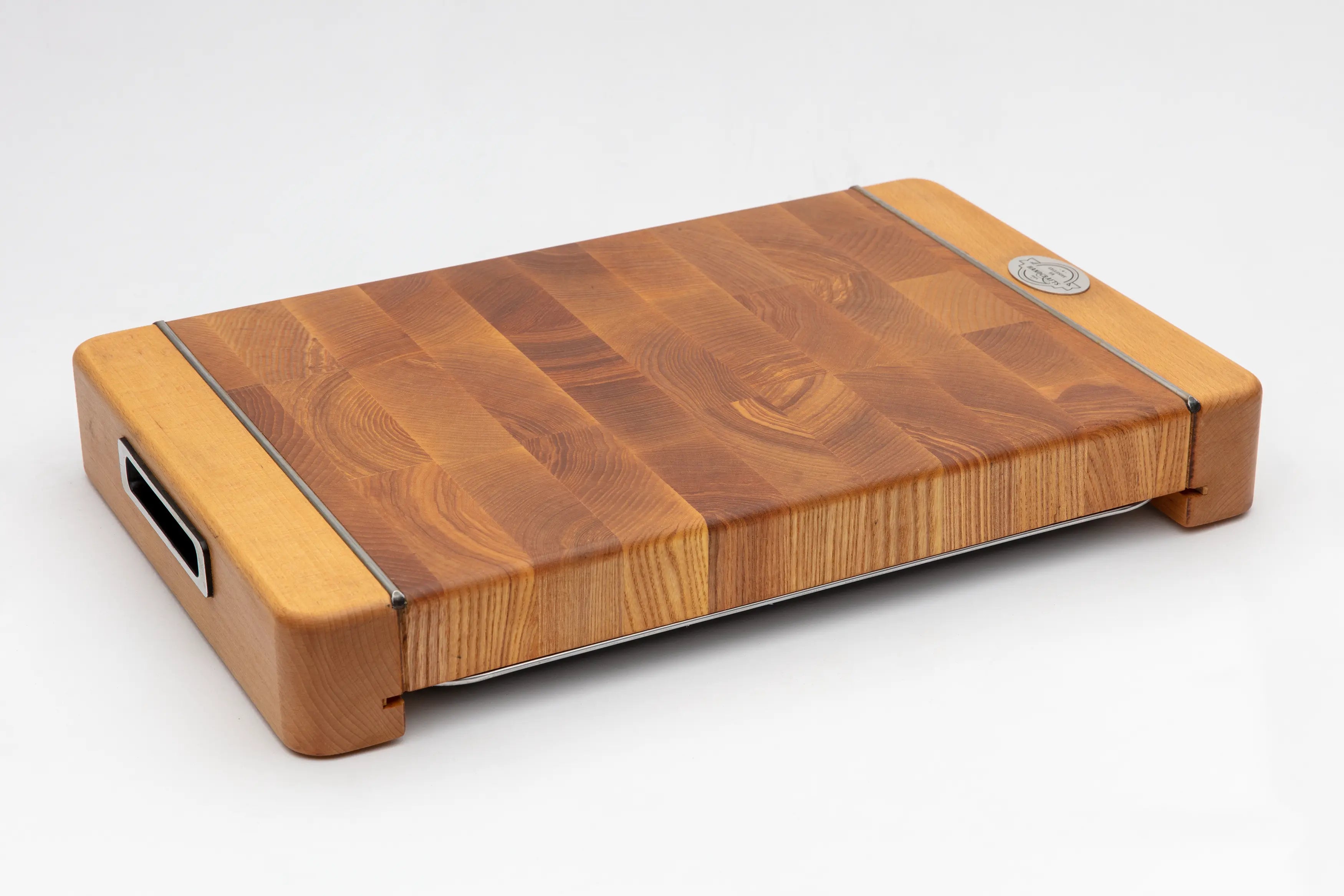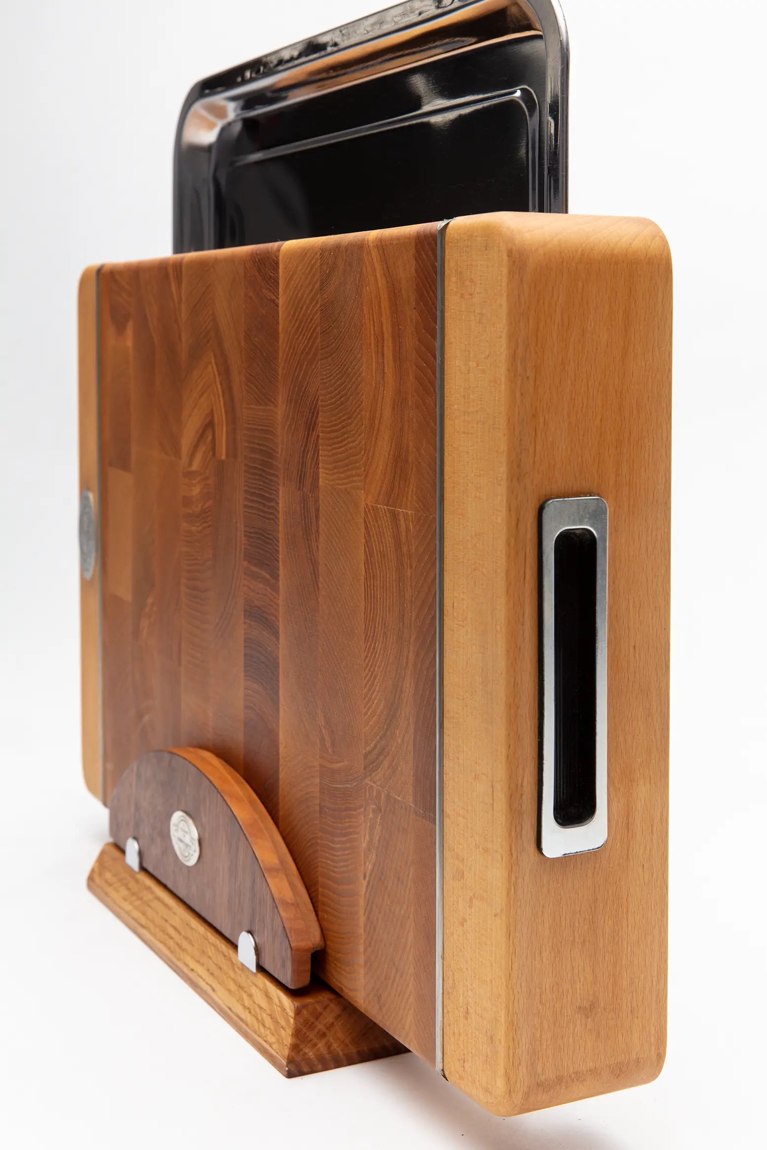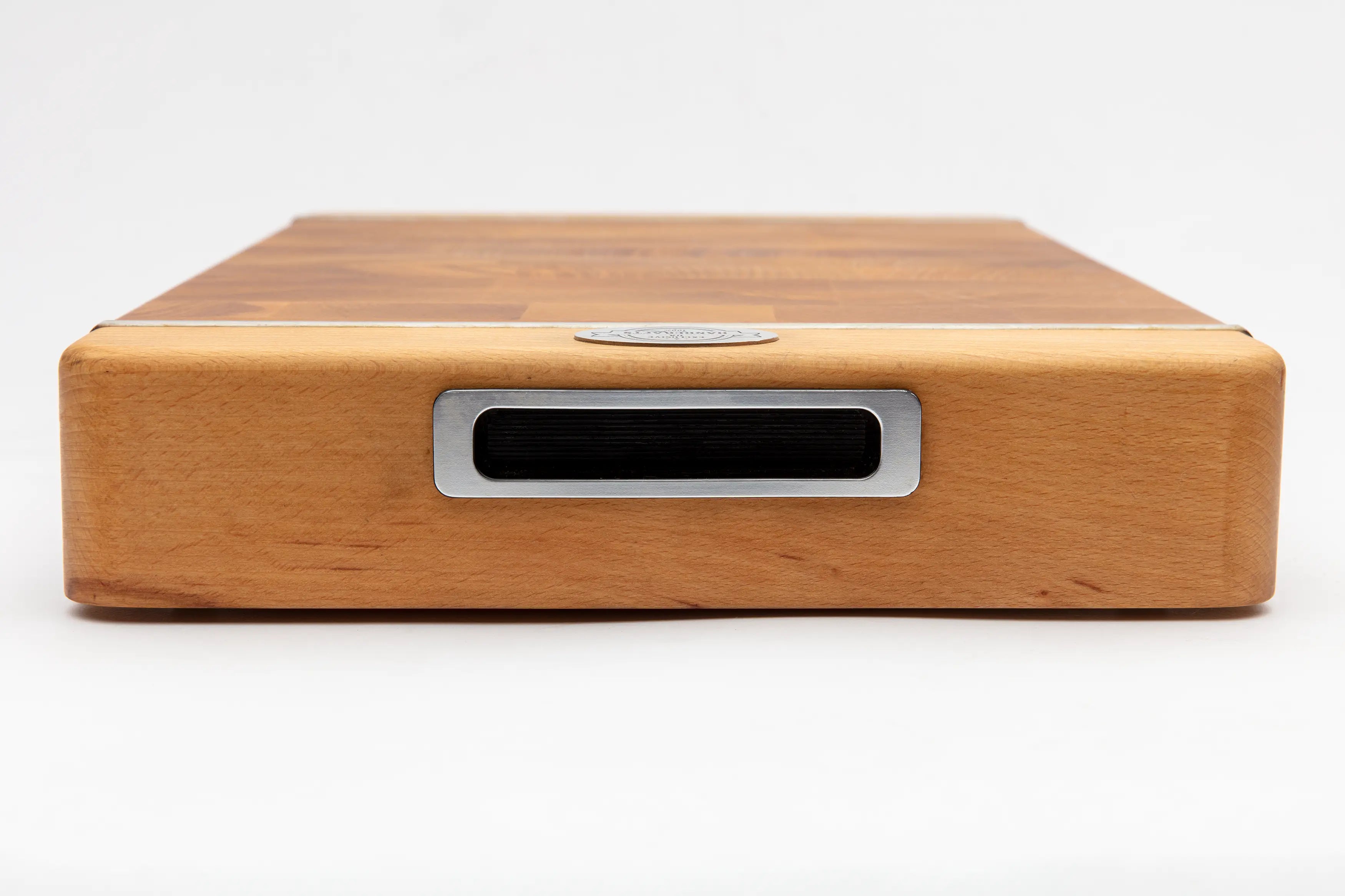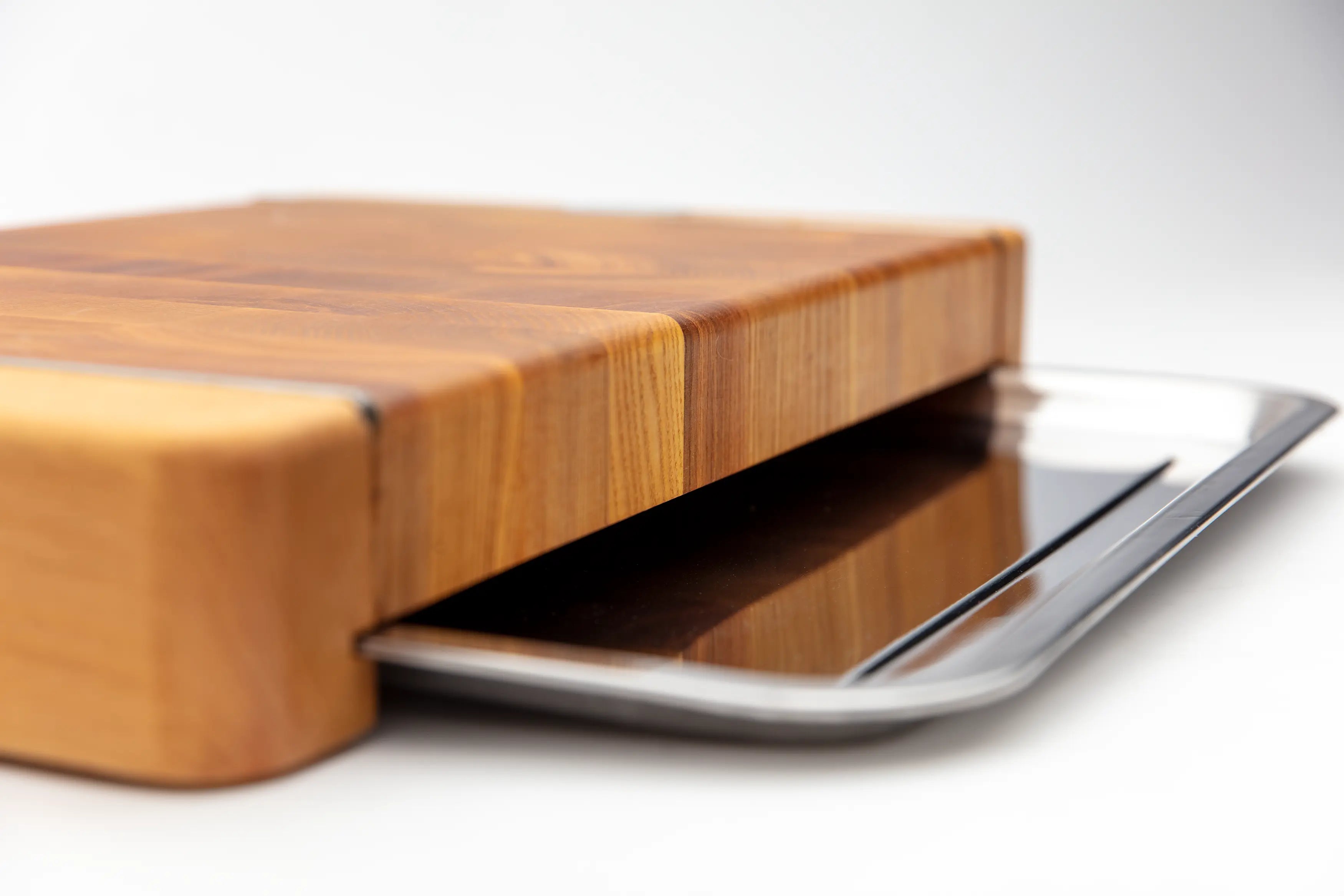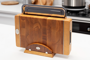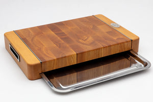 Die Premium Stirnholz-Schneidebretter der Modellreihe 21 mit ausziehbarem Edelstahltablett sind in zwei Größen erhältlich, um den Bedürfnissen jeder Küche gerecht zu werden: