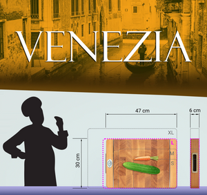 - Venezia (47x30x6 cm): Kompakte Größe, ideal für kleinere Küchen, inspiriert von der Vielseitigkeit der Stadt Venedig.
