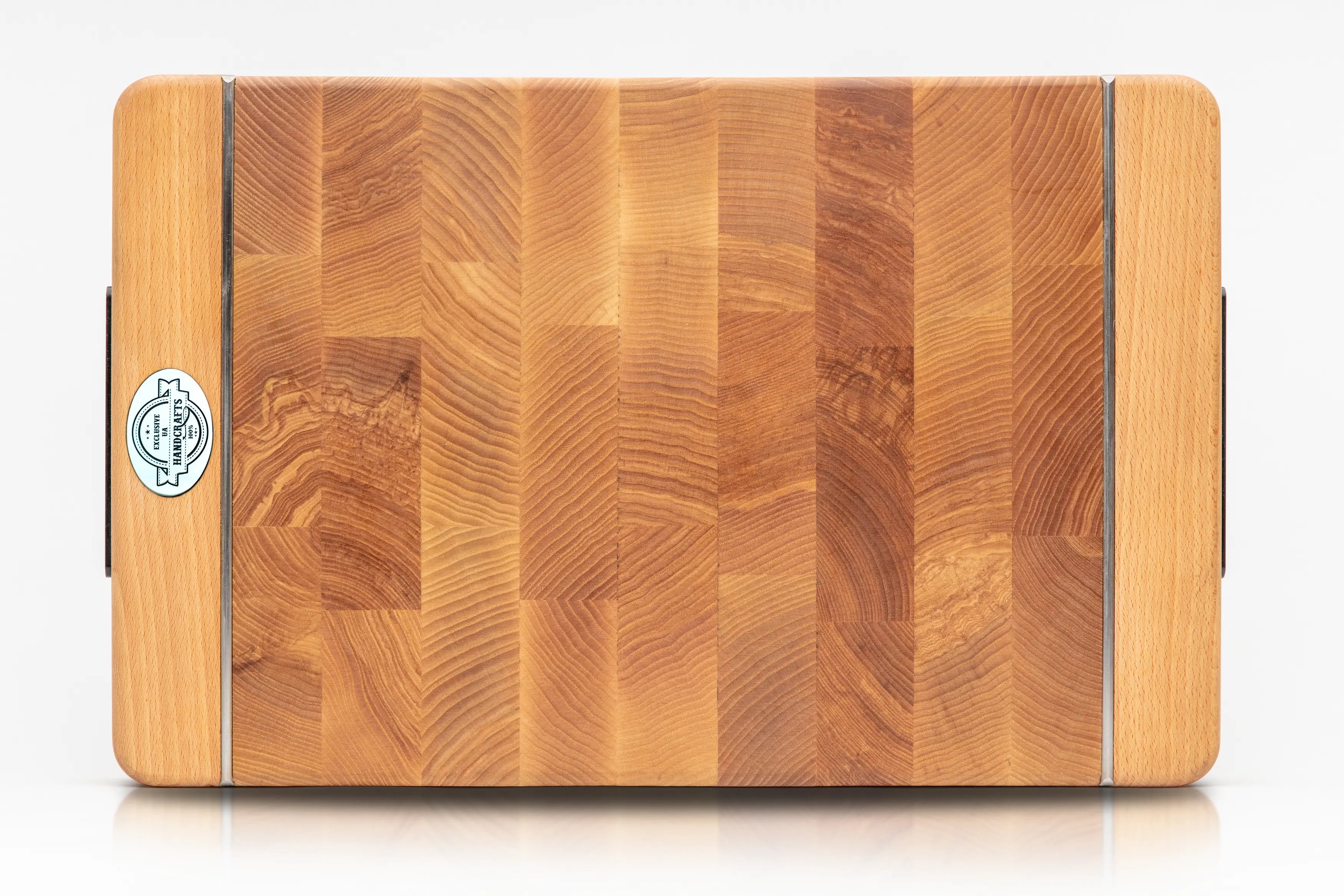 Die Modellreihe 22 unserer Premium Stirnholz-Schneidebretter ist mehr als nur ein Küchenutensil – sie ist ein Kunstwerk, das modernes Design und höchste Handwerkskunst vereint. Diese Schneidebretter bringen Eleganz und Stil in jede Küche, egal ob rustikal oder modern.