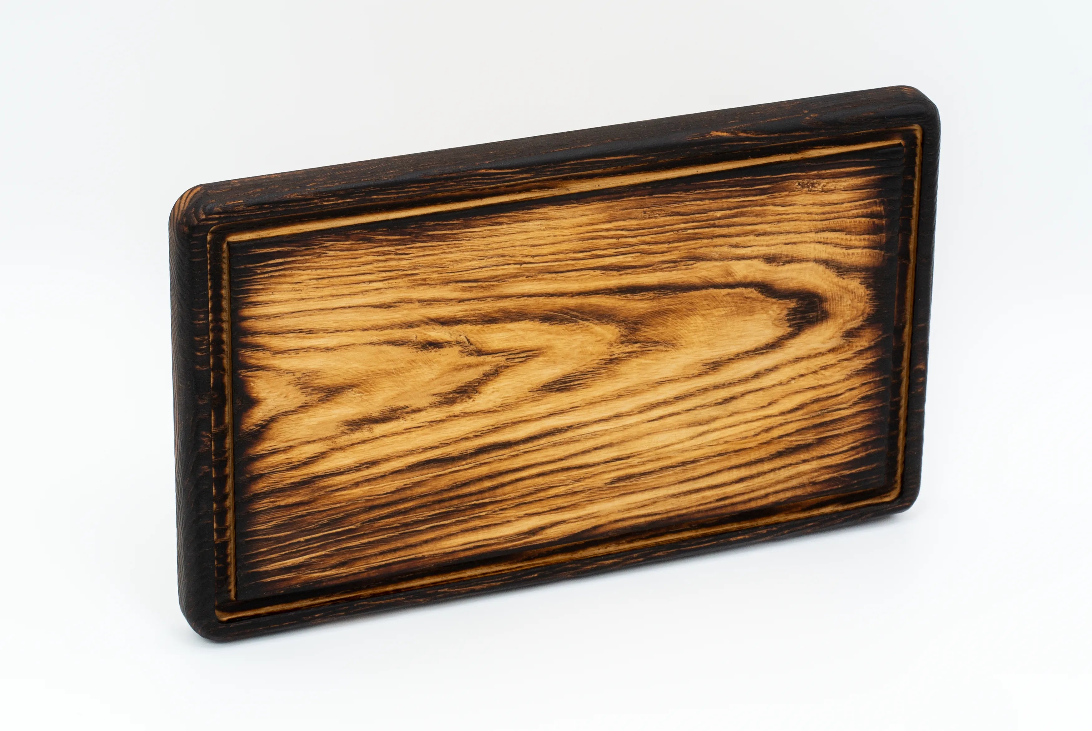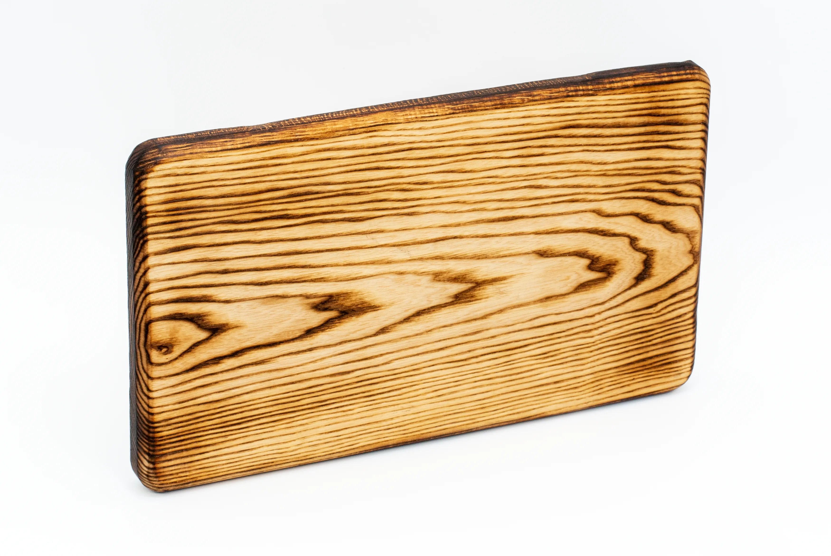 - Angebranntes Finish: Verleiht dem Brett eine markante, dunkle Färbung und hebt die Holzmaserung hervor.
