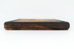 Das Burning Brick wird aus hochwertiger Esche gefertigt und durchläuft einen speziellen Veredelungsprozess mit Feuer, der das Holz dunkel färbt und die Maserung hervorhebt. Die einseitige Saftrille macht es ideal für das Schneiden und Servieren von saftigen Speisen, während das 2 cm dicke Brett eine robuste, langlebige Oberfläche bietet. Ob in der Küche oder auf dem Tisch – dieses Servierbrett ist ein echter Hingucker.