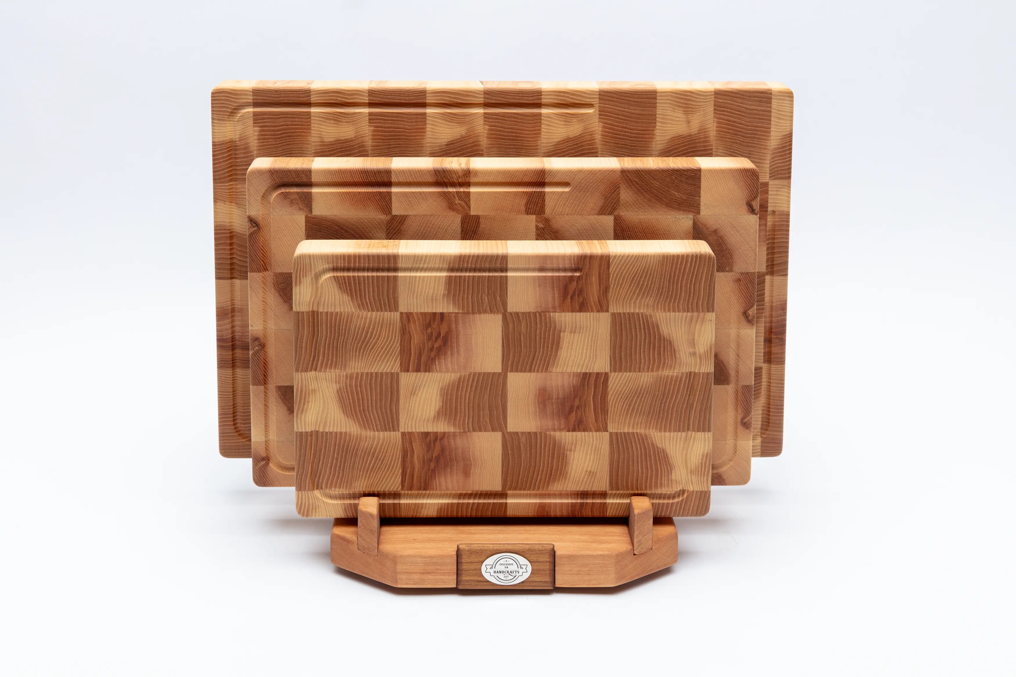 Das ComfortCut Stirnholz-Schneidebrett 3er-Set mit Saftrille bietet die perfekte Kombination aus handgefertigter Qualität, stilvollem Design und praktischer Funktionalität. Mit diesem Set erhältst du alle drei Größen des ComfortCut Schneidebretts – S, M und L – zusammen mit einem exklusiven Design-Standfuß, der deine Bretter sicher und platzsparend aufbewahrt. Hergestellt aus massiver Esche, bietet das Set langlebige, hygienische Arbeitsflächen, die jede Küche aufwerten.