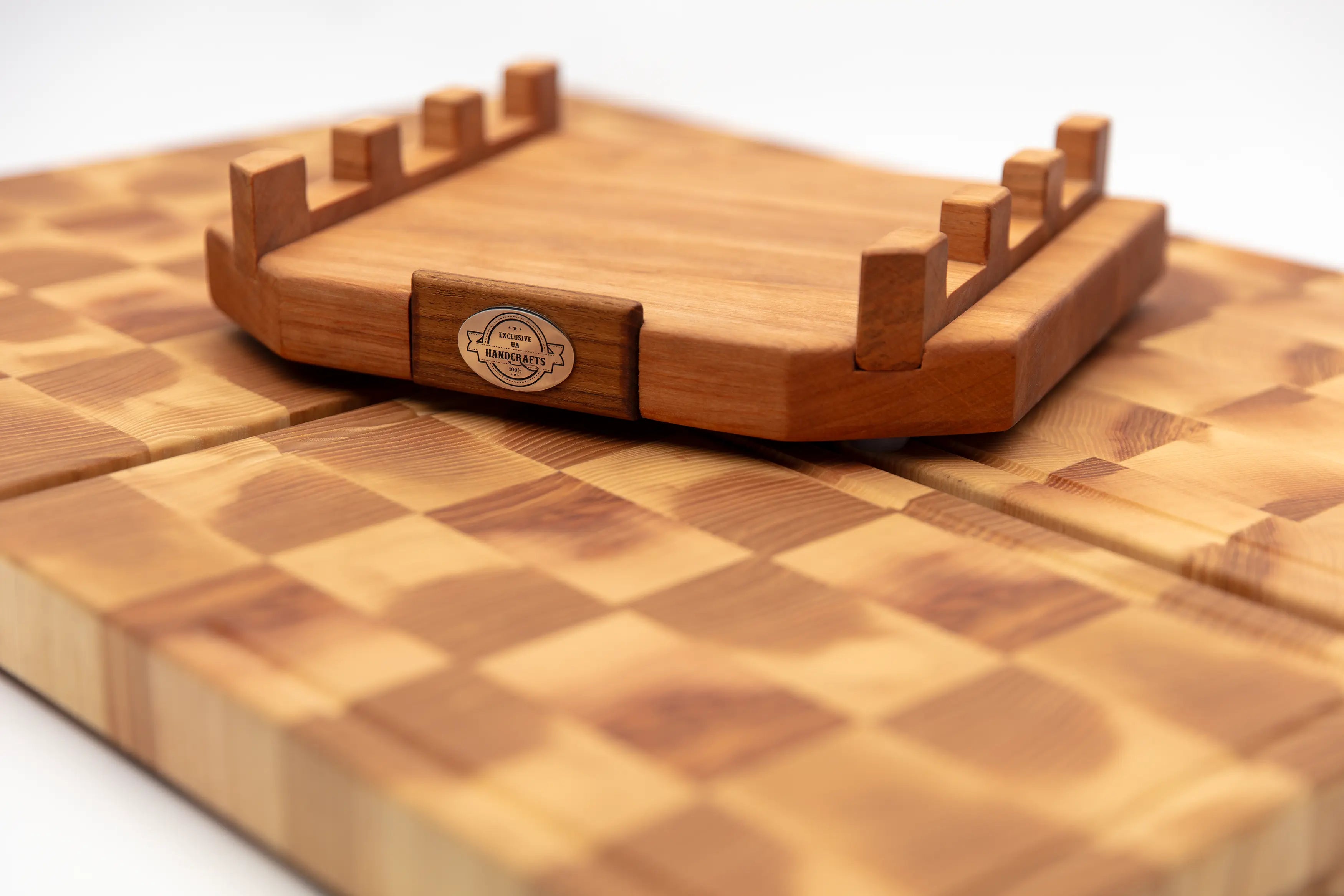 Unsere wunderschönen Stirnholz-Schneidebretter sind nicht nur funktional, sondern auch ein echtes Kunstwerk. Sie wurden von erfahrenen Handwerkern in aufwendiger Handarbeit gefertigt und bestechen durch ihre natürliche Schönheit und Langlebigkeit. Für die Herstellung verwenden wir in der Ukraine heimische Holzarten wie, Eiche, Esche, Kirsche, Buche oder Nuss. Diese Holzarten zeichen sich durch eine schadstoffreie und widerstandsfähige Struktur. Durch die natürlichen Harze besitzen die Hölzer eine eigene antibakterielle Wirkung.